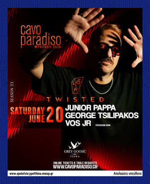 Cavo Residents Night | Twisted w/ Junior Pappa • George Tsilipakos • Vos Jr (percussion show) • 2026-06-20 23:00